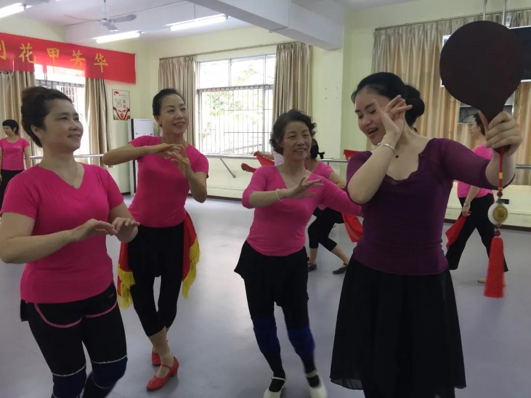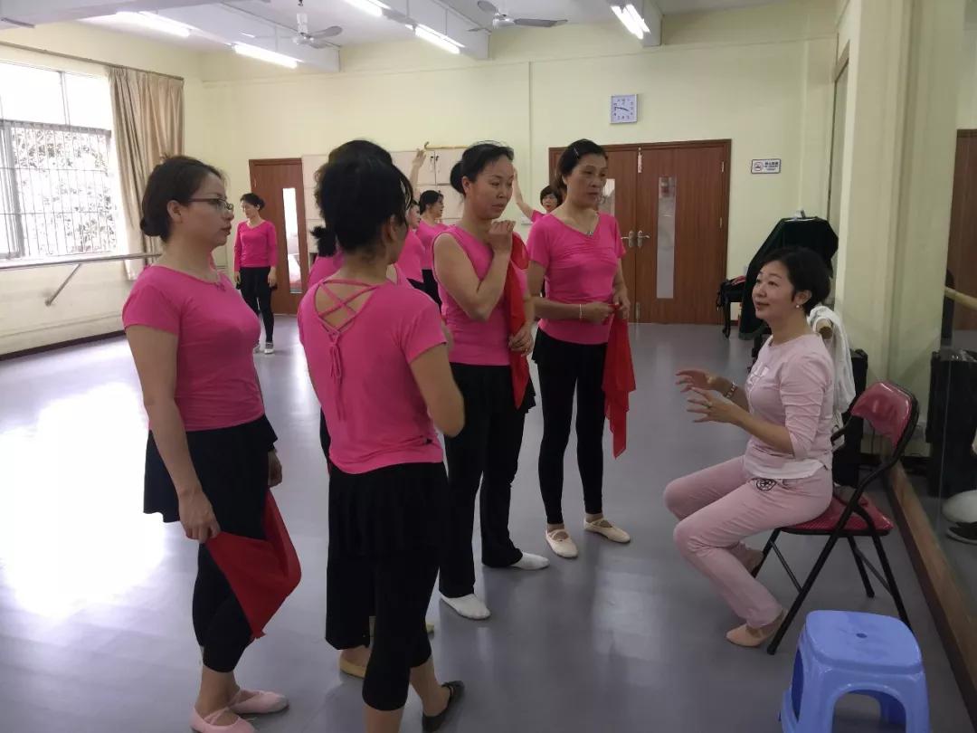 赵玲、刘运英、欧雪兰、伍映珊等小队长分组带动练习