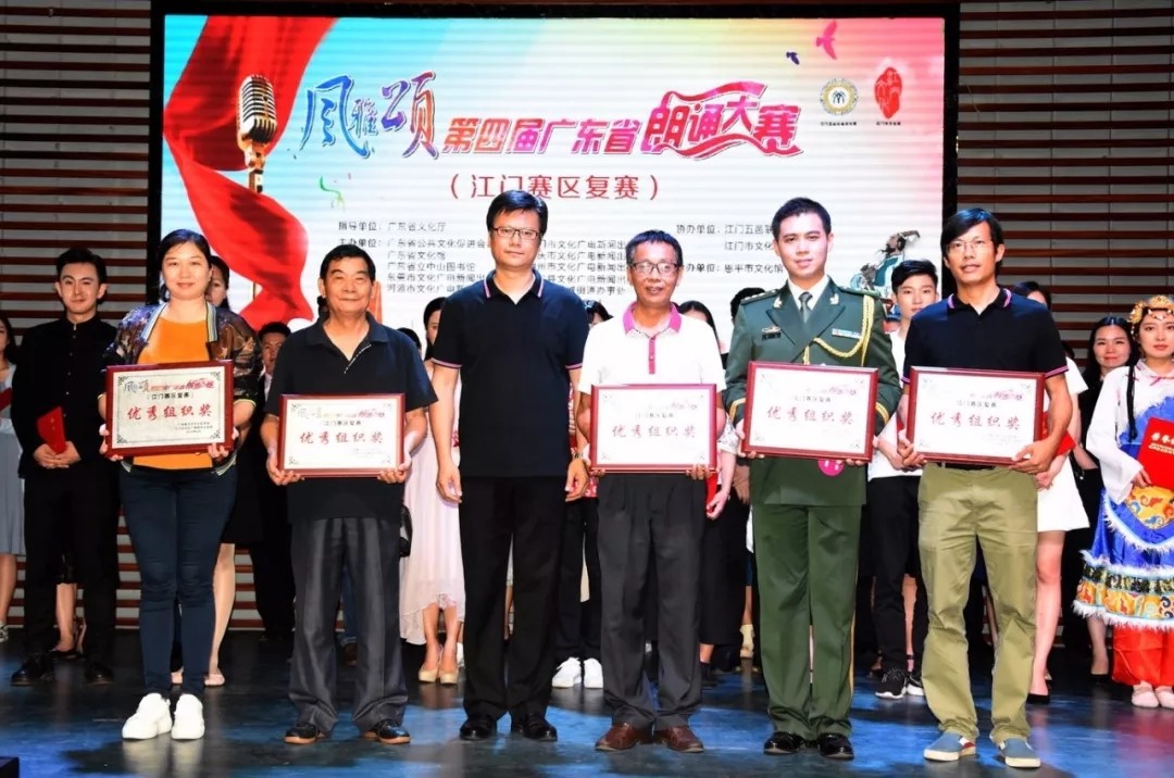 经过激烈角逐,“风雅颂”——第四届广东省朗诵大赛(江门赛区)最终评选出金奖6名,银奖10名,铜奖12名及优秀奖若干名。评委嘉宾们为获奖选手颁发获奖证书及奖金,并为积极组织选手参加大赛的江门、阳江、湛江、茂名四个赛区及恩平市文化馆颁发了“优秀组织奖”牌匾。