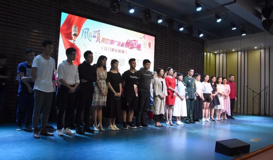 5月20日上午九时,激昂嘹亮的朗诵声响彻恩平市青少年宫剧场,“风雅颂”——第四届广东省朗诵大赛(江门赛区复赛)正在这里激烈上演。来自江门、湛江、茂名、阳江四市的43组选手为全省总决赛展开最后一搏,也为现场观众奉献了一场精彩的听觉盛宴。