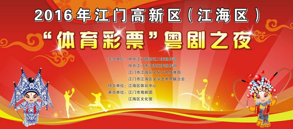 由中共江门高新区工委宣传部、 中共江门市江海区委宣传部、区文化广电体育局、区文学艺术界联合会共同主办,江门市粤剧团、江海区文化馆联合承办的“2016年江门高新区(江海区)‘体育彩票’粤剧之夜”(以下简称"粤剧之夜")晚会将在7月30日19:30—21:30迎来首秀。